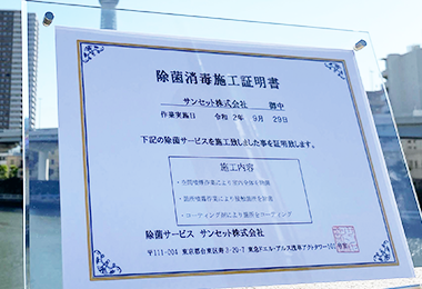 防疫(除菌・消毒)しましたという証明書と発行致します。